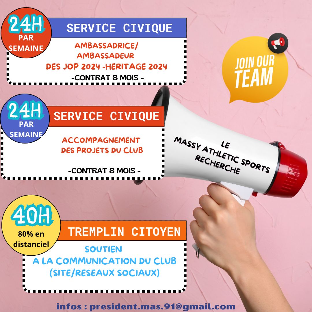 Pour compléter notre équipe , le Massy Athletic Sports et ses sections recherche :